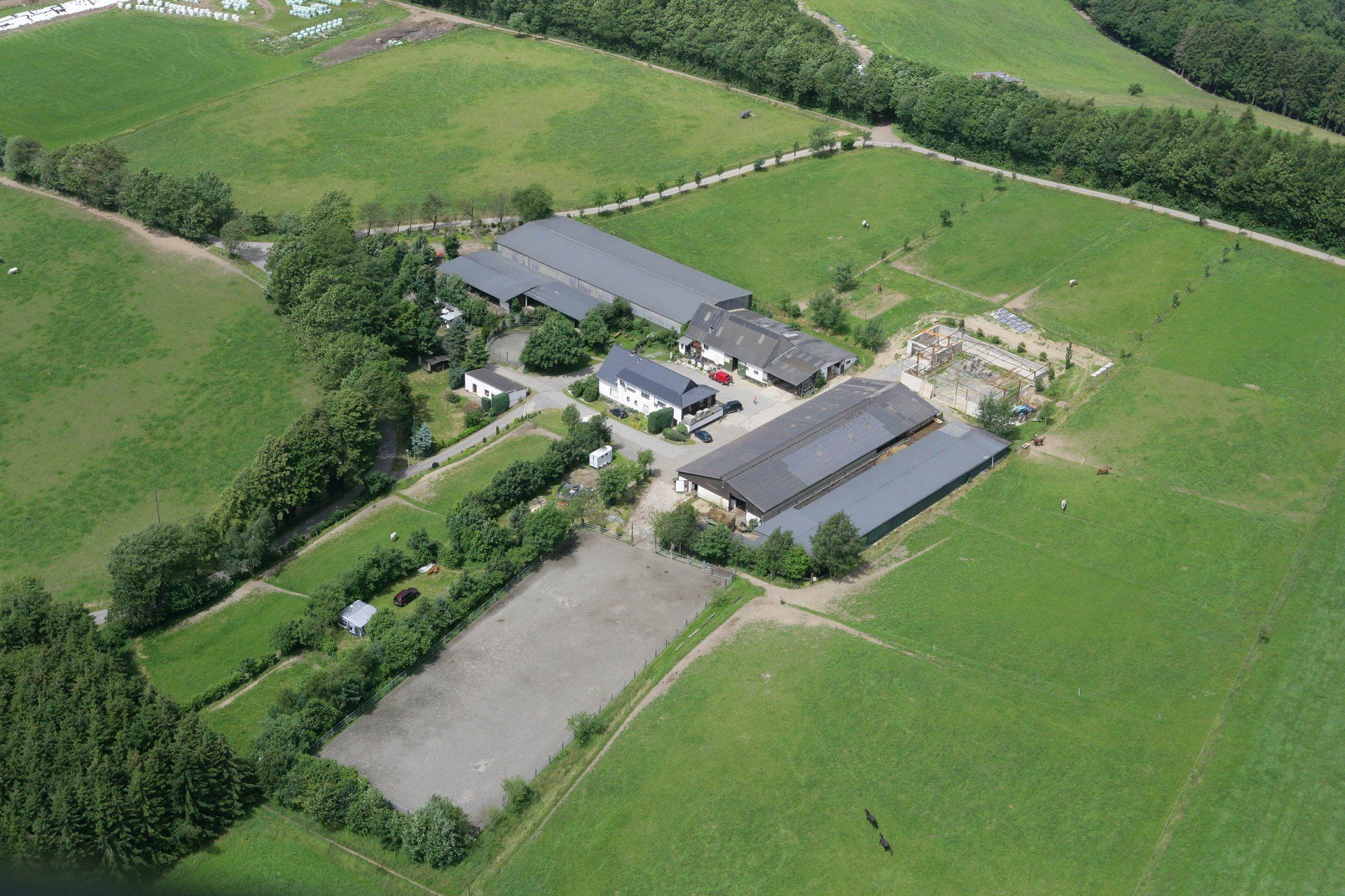- Eine 20 x 55m große Reithalle (mit Reiningboden)